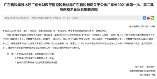 2021年廣東省高新技術(shù)企業(yè)認(rèn)定證書