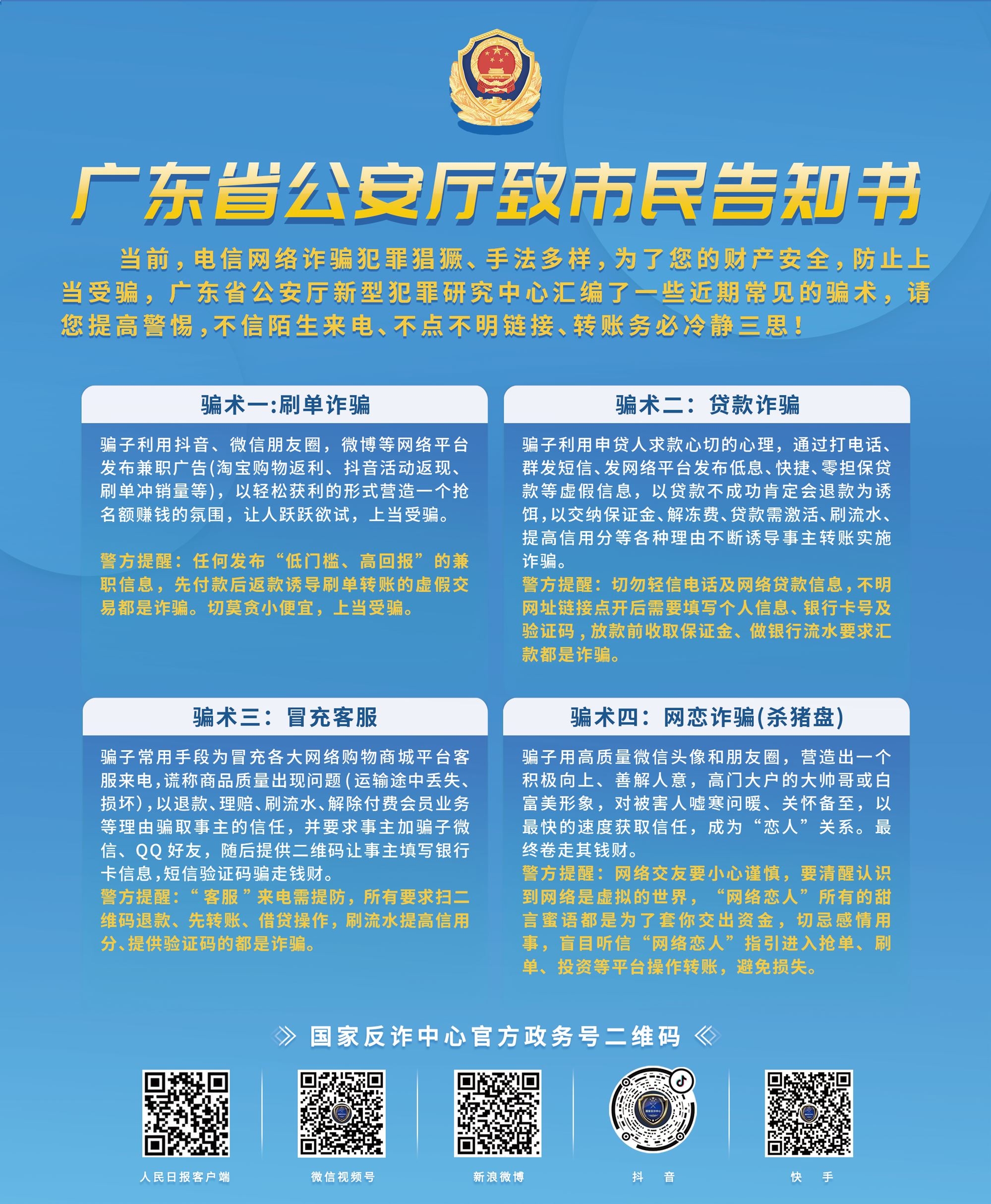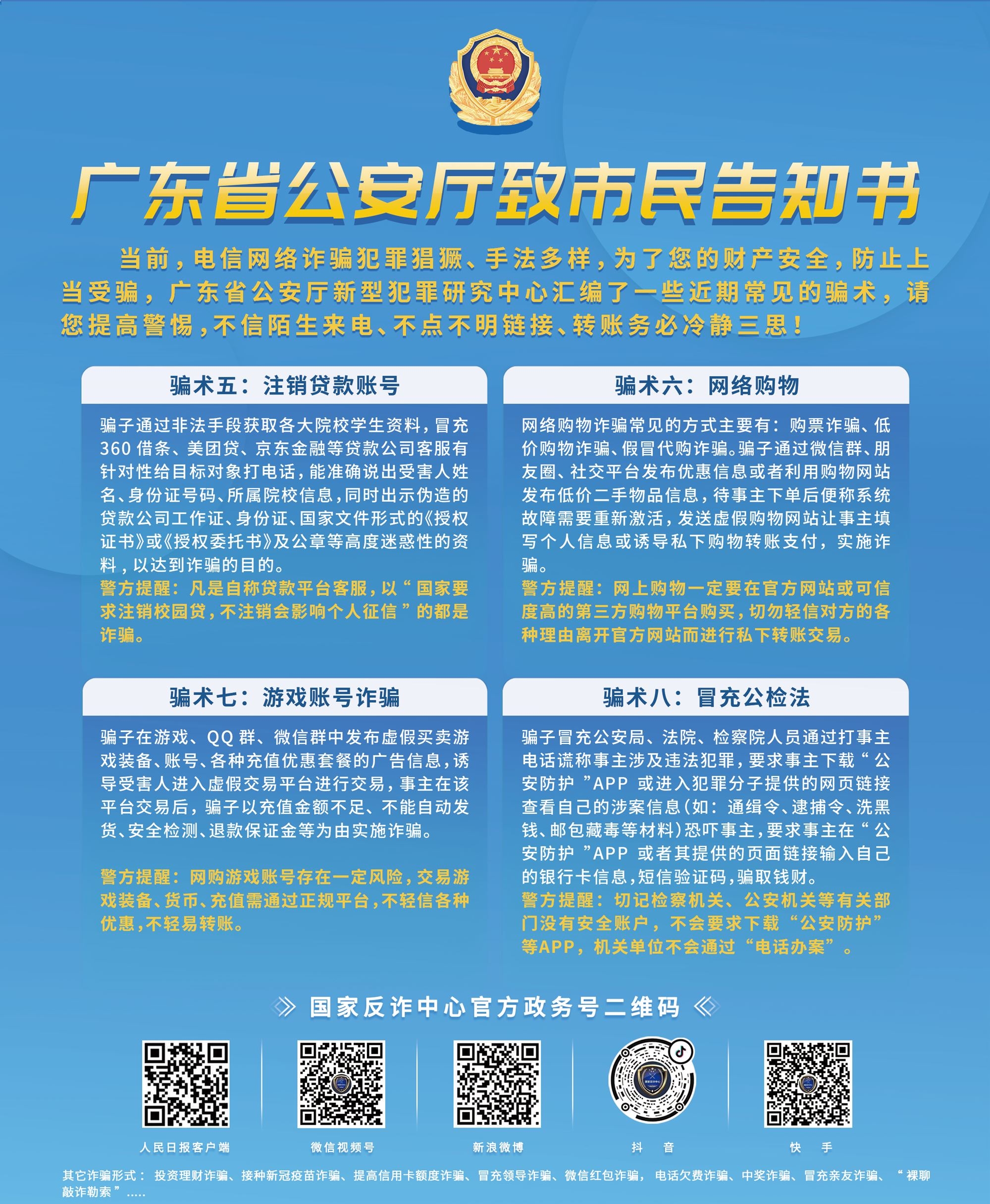 【普法專欄】《廣東省公安廳致市民告知書(shū)》