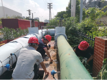 主管網(wǎng)作為園區(qū)供熱核心管道,由于停運(yùn)次數(shù)較少,在國(guó)慶假期園區(qū)企業(yè)停汽期間對(duì)主管網(wǎng)定檢是保障節(jié)后管道安全運(yùn)行的關(guān)鍵工作。10月1—3日,公司根據(jù)相關(guān)規(guī)定要求對(duì)園區(qū)內(nèi)蒸汽管網(wǎng)主管道定期檢查,并聯(lián)系特檢院對(duì)主管道作檢驗(yàn)。雖正值高溫天氣,但現(xiàn)場(chǎng)的工作人員即使汗流浹背也全程跟進(jìn)并及時(shí)解答特檢院提出的問題,按時(shí)按質(zhì)按量完成定檢工作。