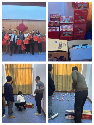 活動(dòng)現(xiàn)場(chǎng)熱鬧非凡,歡聲笑語(yǔ)此起彼伏。五彩斑斕的圈圈整齊排列,各式各樣的精美禮品琳瑯滿目,讓人目不暇接。從實(shí)用的生活用品到美味的零食禮包,每一件禮品都充滿了公司對(duì)員工的關(guān)愛與祝福。