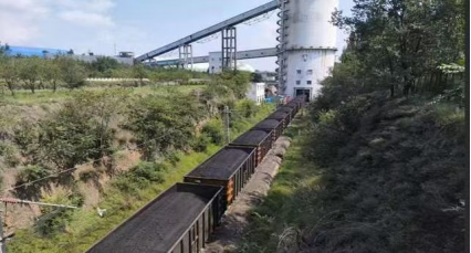 站臺(tái)發(fā)運(yùn)業(yè)務(wù),首列車(chē)煤開(kāi)出站臺(tái)的照片