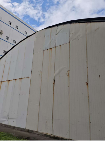 發(fā)現(xiàn)圓煤倉大門北側(cè)車棚松動、立即加固